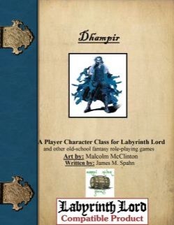 Born of an unholy union between a mortal and a vampire¸ the Dhampir brings his unique collection of dark gifts to your Labyrinth Lord (or other old-school fantasy role-playing game) campaign! With this full 10-level class¸ your player characters will have a chance to fight against their own dark desires¸ or face a new and terrible foe!