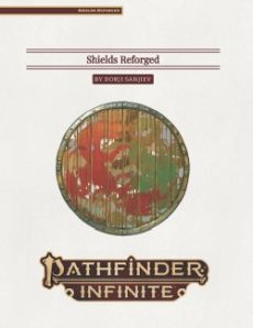 The new fundamental rune - Hardening¸ which steadily increases shields' Hardness¸ Hit Points¸ and Broken Threshold. 14 property runes adapted from specific magic shields¸ including Sturdy¸ Staff-Storing¸ Reflecting¸ and many others! Rules to convert other specific magic shields to this sub-system. Optional rules for Tower Shields and precious materials. Expansion of Automatic Bonus Progression variant rule to include auto-scaling shields.