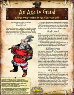 This is a Savage Worlds One Sheet adventure for Saga of the Goblin Horde. It provides a simple five-scene framework which can be run with minimal preparation¸ leaving room for the Game Master to flesh out the story as much or as little as they wish.