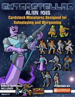 Extrastellar Set Nine: Alien Foes provides a set of alien creature sci-fi paper miniatures designed for role-playing with such games such as Starfinder¸ Traveller¸ Mothership¸ Alien RPG¸ or the White Star RPG. The miniatures would also be perfectly at home in a strange mystery¸ superhero setting or even in a post-apocalyptic game. With lots of colour and detail options available and unlocked pdf files allowing for easy modding¸ this set is much more than meets the eye. Remember¸ in space¸ no one can hear ice cream.