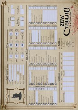 Karta Badacza (postaci) do polskiej edycji Zewu Cthulhu RPG¸ wersja do gry w epoce lat dwudziestych XX w. (1920).