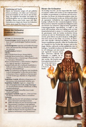 Die naturverbundenen Druiden gab es bereits in der Regionalspielhilfe "Die Streitenden Königreiche". Geoden hingegen finden hier ihren ersten Auftritt in der fünften Edition. Sie unterteilen sich wie gewohnt in die eher bescheidenen Diener der Erdmutter und die autoritären Herren der Erde. Interessanterweise wird diesmal auch die Möglichkeit für (extrem seltene) weibliche Geoden offen gelassen. Leider fallen die besonderen Geoden-Rituale mit zwei Stück sehr übersichtlich aus. Und jede Variante der Geoden lernt nur eins davon.