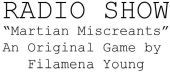 You're playing a group of radio show actors¸ when martians attack. Cleverly avoid getting zapped by the aliens¸ while entertaining with a makeshift show. Follow the foley's cues and manipulate a token economy to maneuver and either save your whole cast¸ or be the last actor standing at the end of the performance. This game is now included in the Dread Designs anthology!
